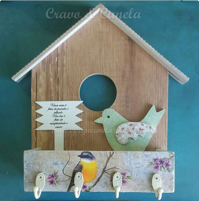 > Casa pta trecos/chaves 4 ganchos estampa passaro - produção sob consulta - 3134P